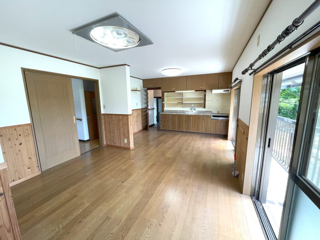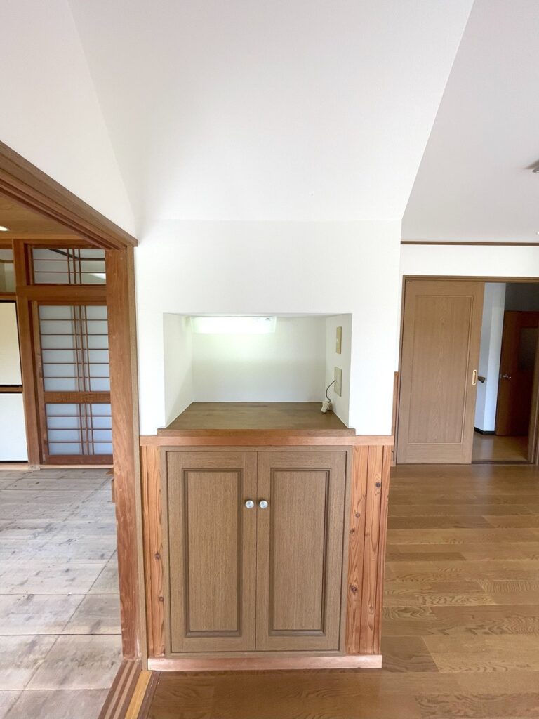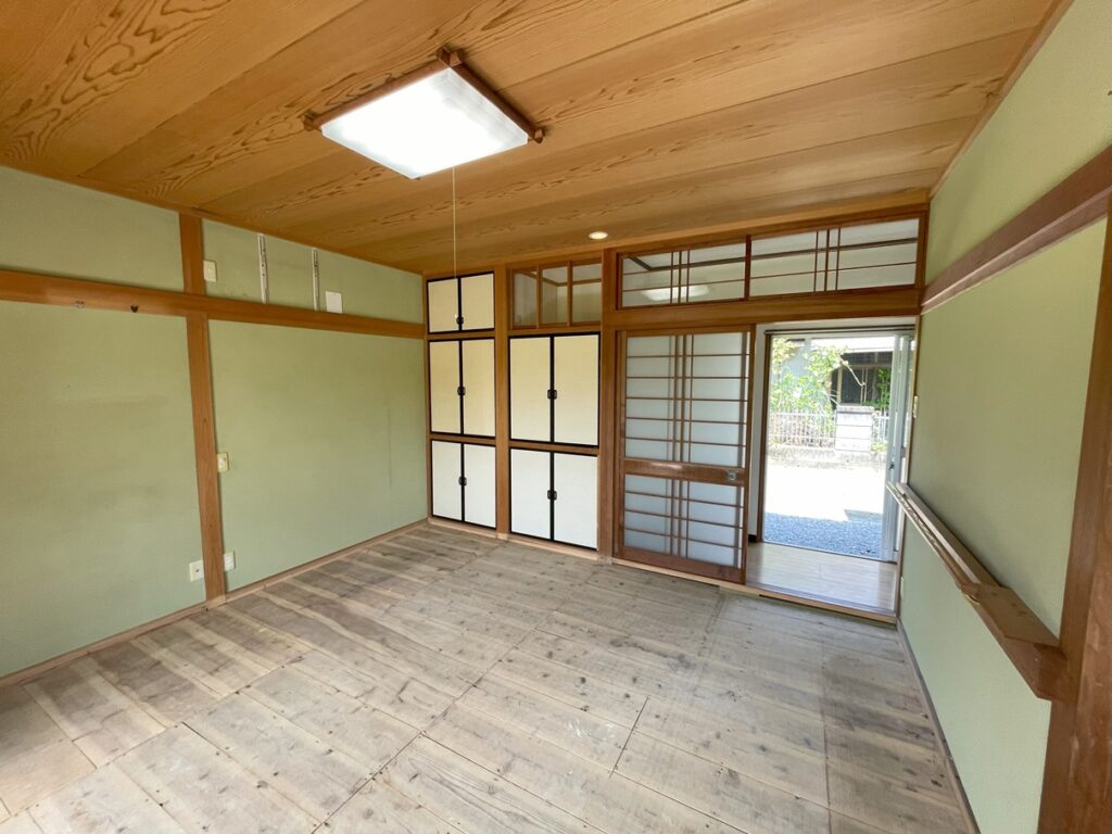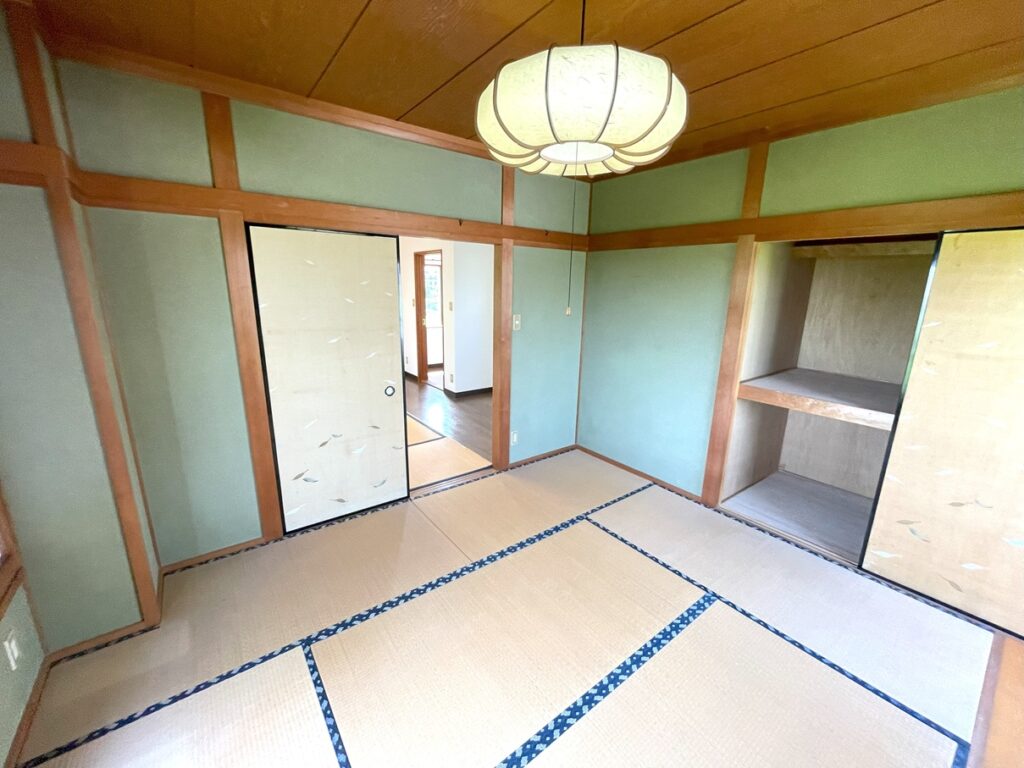 LDKと併設しての8畳和室。折れ戸の押し入れとガラス建具の天袋有ります。畳は保管してます。