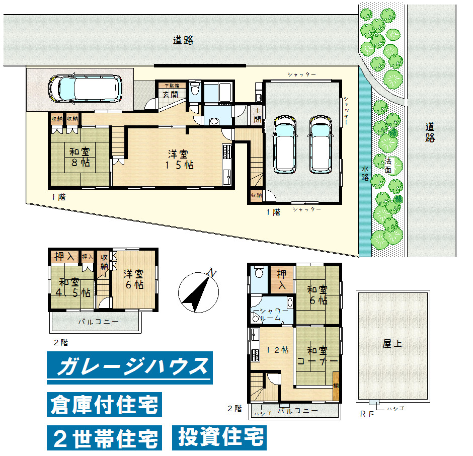 電動シャッター付ガレージ こちらからも出入り出来ます